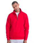 A staple wear-forever 1/4 zip sweat is a classic fit crafted from cotton faced fabric that is great for both decorating and layering. Soft cotton faced fabric. Brushed back fleece. Zip neck with metal YKK zip. Ribbed cuffs and hem. Tear out label.