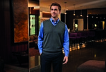 V-neck, sleeveless, ribbed neck, armhole and hem, contrast inner neck strip