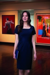 Curved neckline, satin stripe seam detail, pleats for ease of movement, princess seams, centre vent, centre back zip, short sleeve.