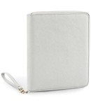 100% leather-look PU. Saffiano fine grain. Soft touch lining. Holds six credit cards. Main zip compartment. Internal zip pocket. Multiple internal pockets. iPad miniâ„¢/Tablet compatible. Can be decorated front and rear. Tear out label.